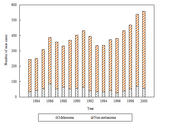 Number of new cases of skin cancer, 1983 to 2000 (View)