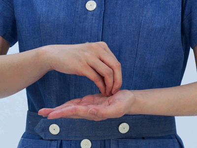 - Place 2 fingers of both hands at the top of the nose strip and mold the nosepiece to the shape of your nose using both hands.