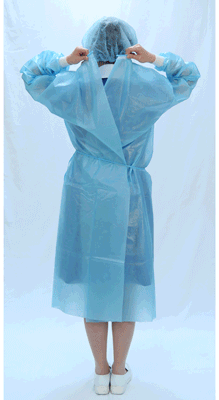 - Unfold the gown; lift the gown up to prevent it from touching the floor.