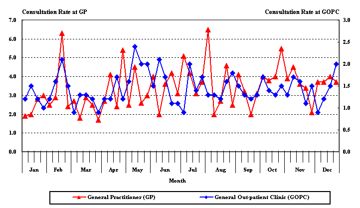 Weekly consultation rates (per 1000 consultations) of acute conjunctivitis in 2013