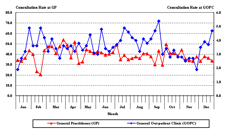 Weekly consultation rates (per 1000 consultations) of influenza-like illness in 2013