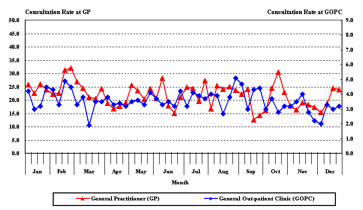 Weekly consultation rates (per 1000 consultations) of acute diarrhoeal diseases in 2013