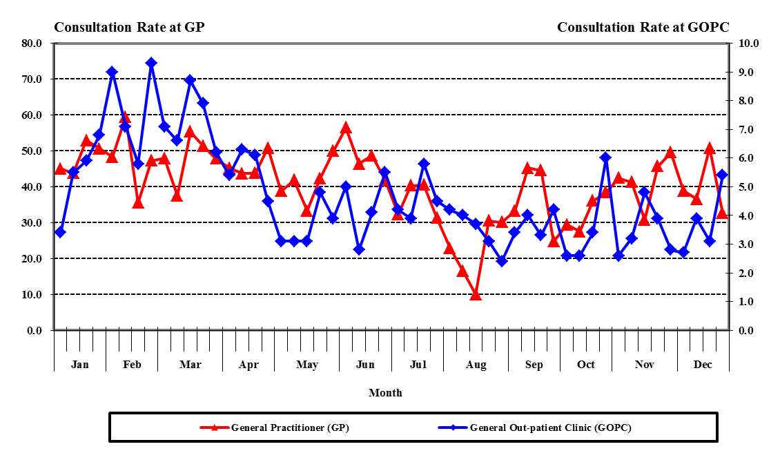 Weekly consultation rates (per 1000 consultations) of influenza-like illness in 2014