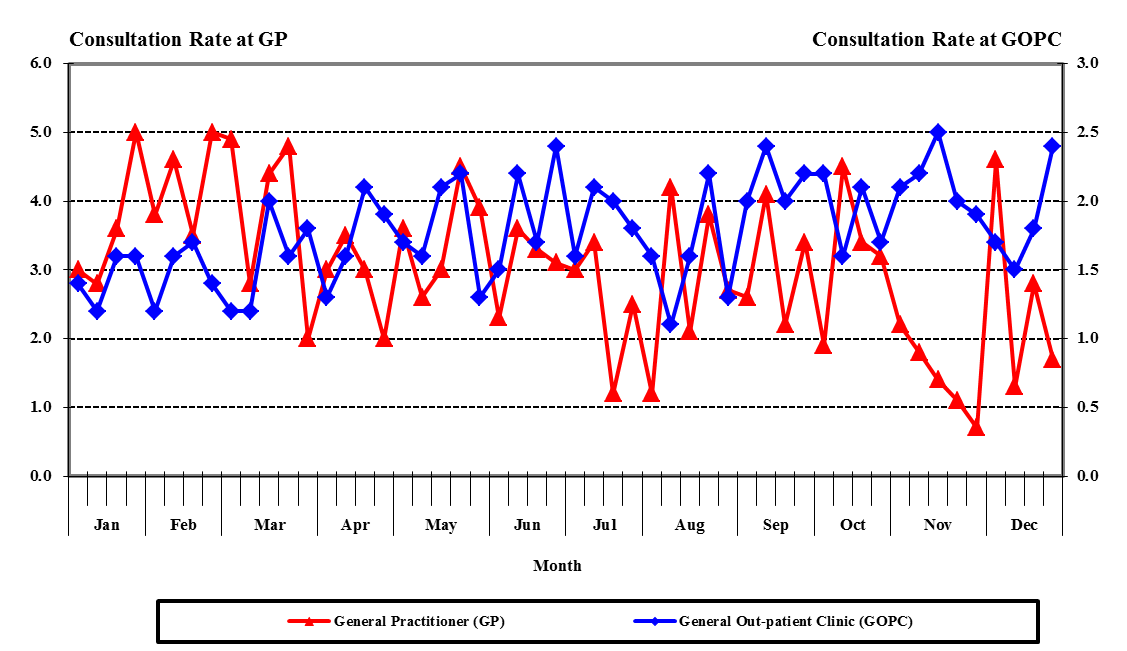 Weekly consultation rates (per 1000 consultations) of acute conjunctivitis in 2014