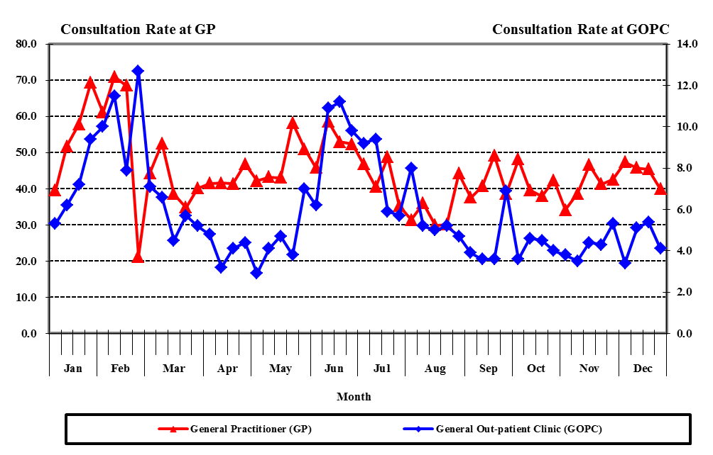 Weekly consultation rates (per 1000 consultations) of influenza-like illness in 2015