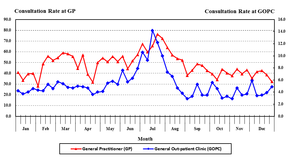 Weekly consultation rates (per 1000 consultations) of influenza-like illness in 2017