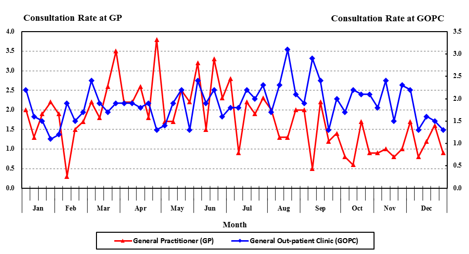 Weekly consultation rates (per 1000 consultations) of acute conjunctivitis in 2017