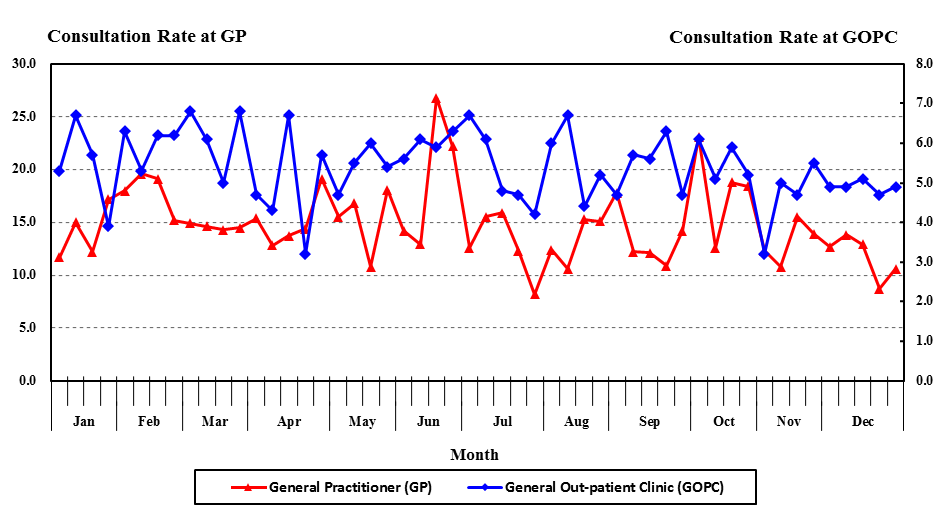 Weekly consultation rates (per 1000 consultations) of acute diarrhoeal diseases in 2017