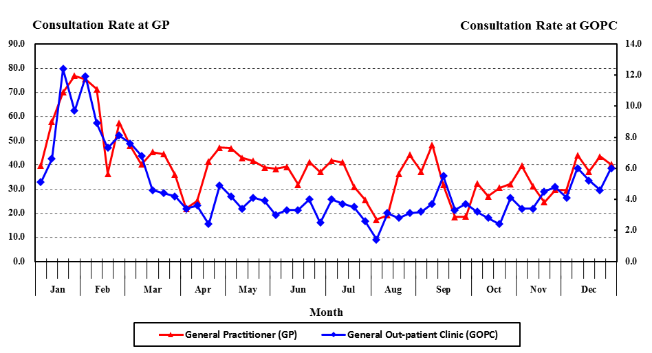 Weekly consultation rates (per 1000 consultations) of influenza-like illness in 2018