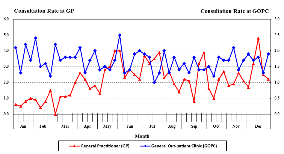 Weekly consultation rates (per 1000 consultations) of acute conjunctivitis in 2018