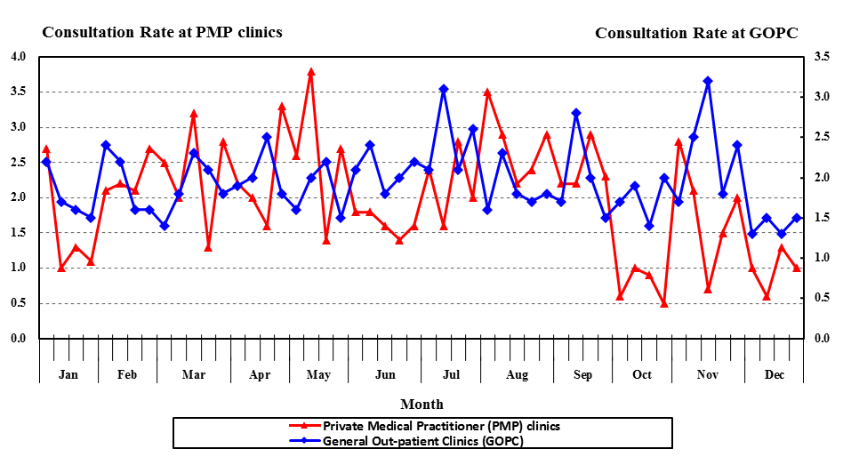 Weekly consultation rates (per 1000 consultations) of acute conjunctivitis in 2019
