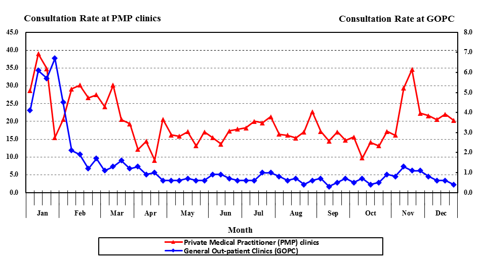 The CHP has started to use electronic data on diagnosis coding of patients of the Hospital Authority's General Out-patient Clinics for sentinel surveillance since January 2020, replacing manual data collection in the past.