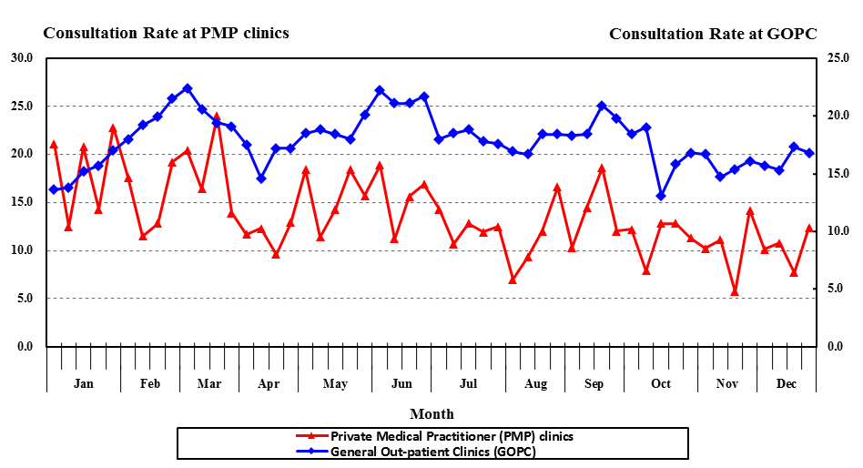 The CHP has started to use electronic data on diagnosis coding of patients of the Hospital Authority's General Out-patient Clinics for sentinel surveillance since January 2020, replacing manual data collection in the past.