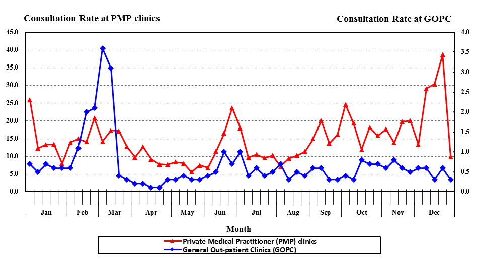 The CHP has started to use electronic data on diagnosis coding of patients of the Hospital Authority's General Out-patient Clinics for sentinel surveillance since January 2020, replacing manual data collection in the past.