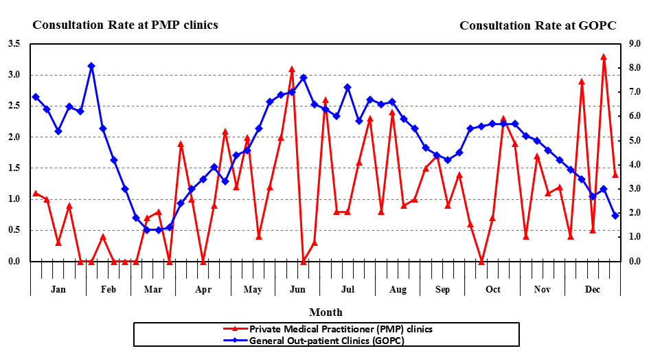 The CHP has started to use electronic data on diagnosis coding of patients of the Hospital Authority's General Out-patient Clinics for sentinel surveillance since January 2020, replacing manual data collection in the past.