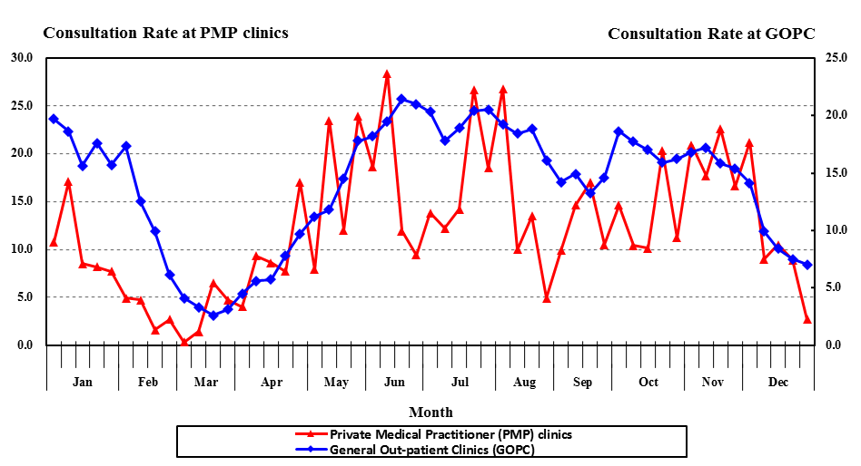 The CHP has started to use electronic data on diagnosis coding of patients of the Hospital Authority's General Out-patient Clinics for sentinel surveillance since January 2020, replacing manual data collection in the past.