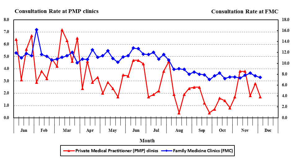 The CHP has started to use electronic data on diagnosis coding of patients of the Hospital Authority's Family Medicine Clinics for sentinel surveillance since January 2020, replacing manual data collection in the past.