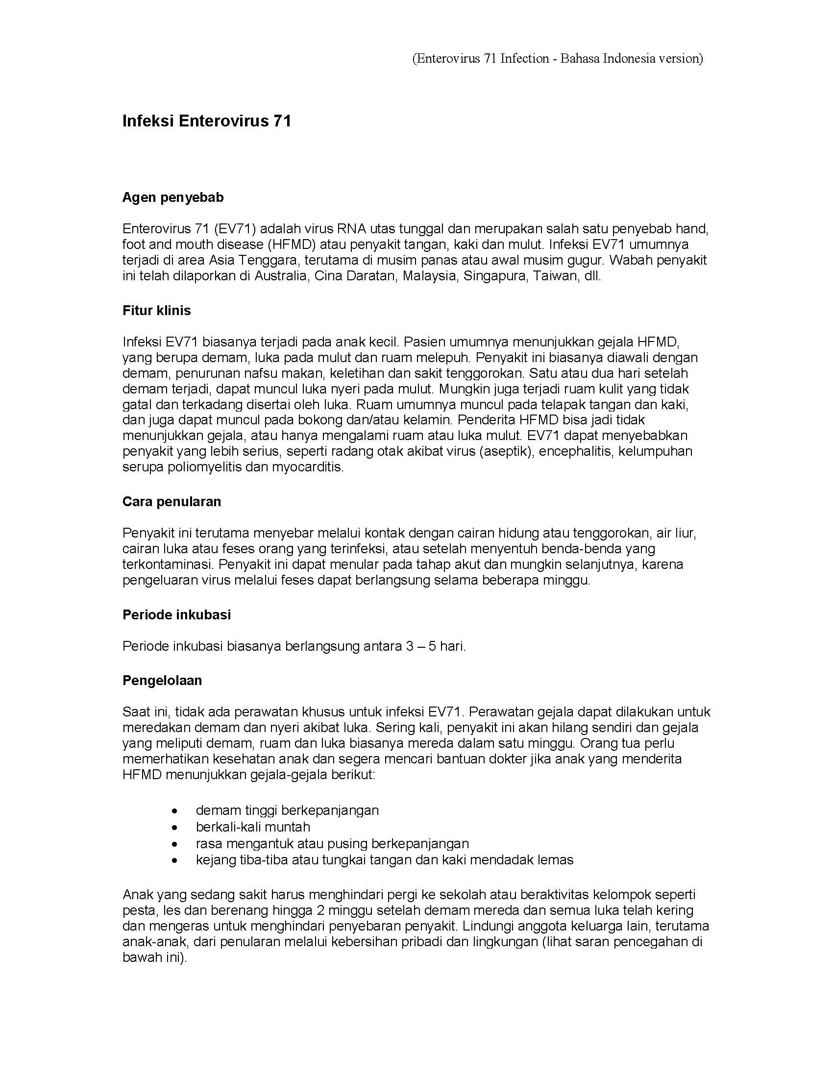 Enterovirus 71 Infection - Bahasa Indonesia version