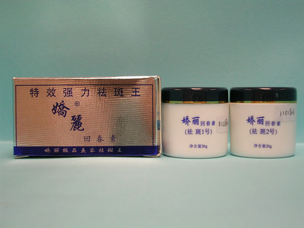 卫生署就「娇丽回春素(祛斑 1 号)及(祛斑 2 号)」美颜霜引致水银中毒而设立的热线至今日( 六月十一日 )下午五时共接获 19 个查询。