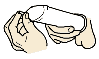 将安全套顶端贮液囊的空气挤出,以便存留射出的精液。