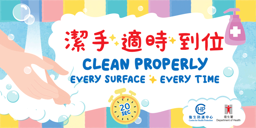 世界衞生組織將每年5月5日定為「手部衞生日」。為響應其呼籲,衞生署自2010年起,於每年5月5日宣傳「手部衞生日」、推廣潔手的重要性。 本年度的宣傳活動以「潔手。適時。到位」為題,希望提高醫療業界及市民大眾對手部衞生的認識,了解正確潔手技巧的重要性。為達到保護效果,潔手除了要適時,還需到位。當雙手有明顯污垢時,應使用梘液及清水潔手。如雙手沒有明顯污垢時,可用含70-80%酒精搓手液潔淨雙手。市民應按潔手技巧7步驟,清潔雙手至少20 秒,以徹底清潔手部的每一個位置,包括手掌、手背、指隙、指背、拇指、指尖及手腕。 |