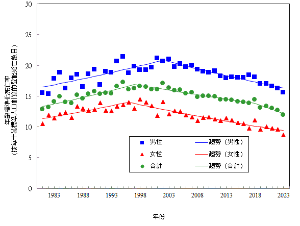 | 註 : | * | 年 齡 標 準 化 發 病 率 是 根 據 GPE Discussion Paper Series: No.31, EIP/GPE/EBD, World Health Organization, 2001 刊 載 的 標 準 世 界 人 口 而 編 製。 |