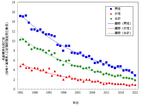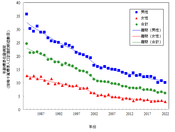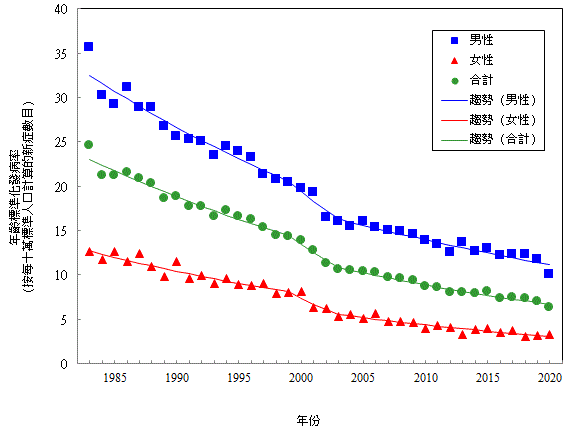 | 註 : | * | 年 齡 標 準 化 發 病 率 是 根 據 GPE Discussion Paper Series: No.31, EIP/GPE/EBD, World Health Organization, 2001 刊 載 的 標 準 世 界 人 口 而 編 製。 |