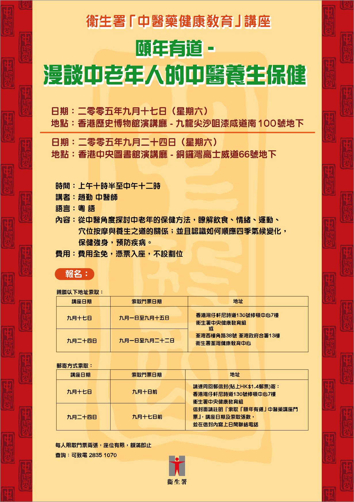 衞生署「中醫藥健康教育」講座 「頤年有道」