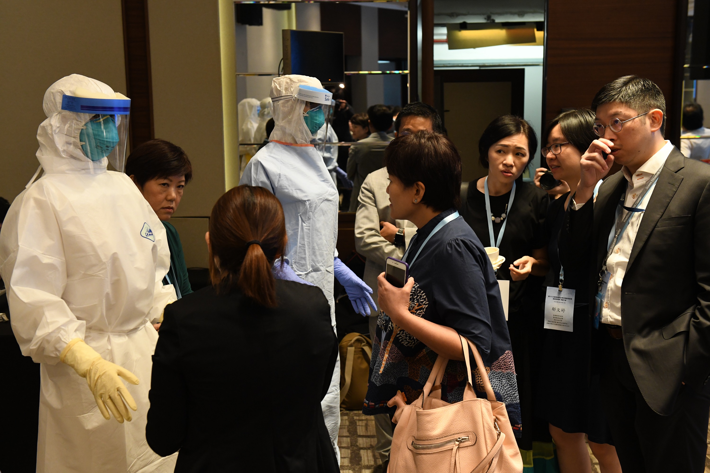 於二零一九年九月二十七日,廣東省衞生健康委員會、香港衞生署、澳門衛生局、三地的疾病防控中心,連同香港的相關部門,包括醫院管理局、香港消防處、食物環境衞生署、環境保護署舉行代號「神盾行動」的桌面演習,以測試及提高三地政府應對埃博拉(伊波拉)病毒病的能力。