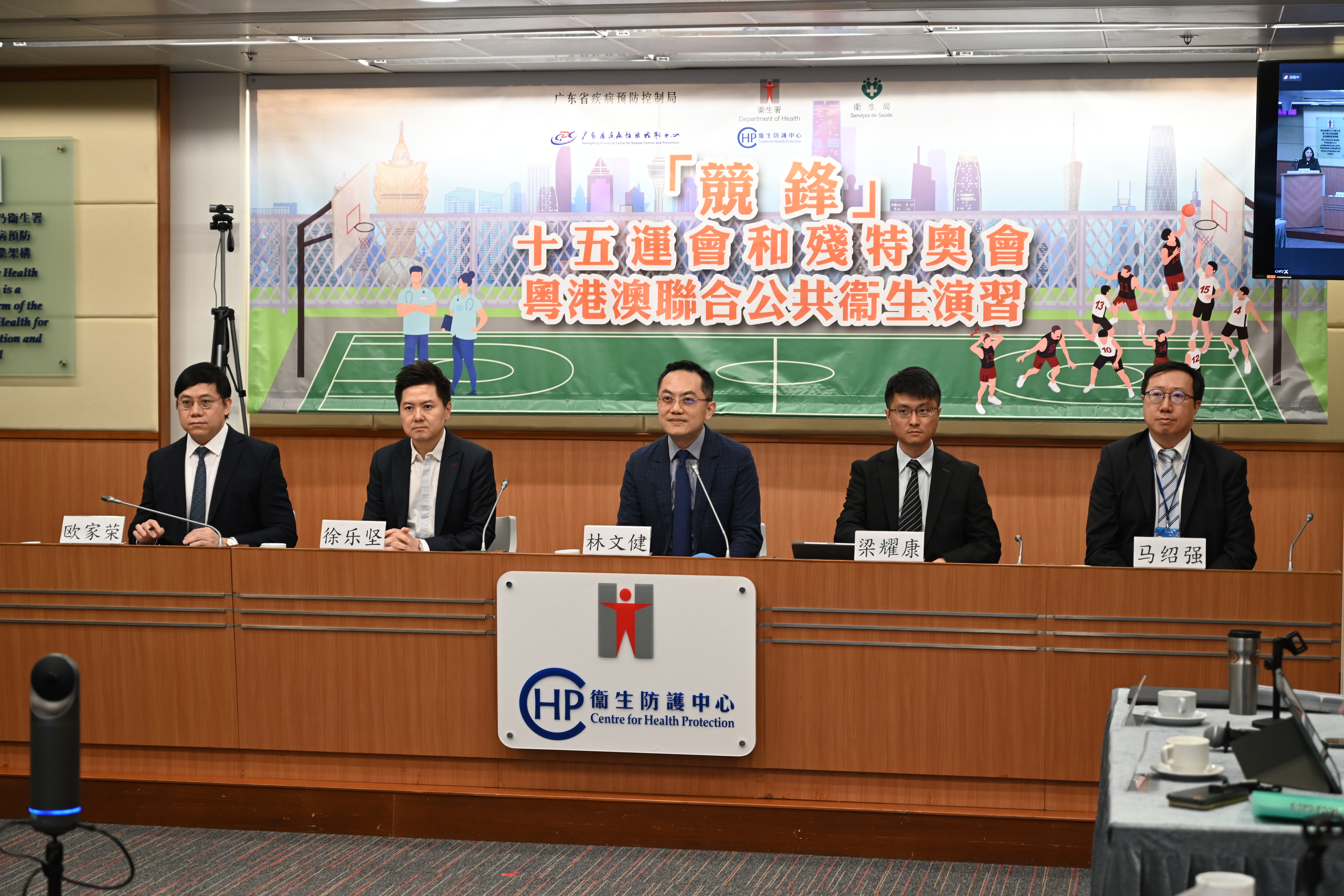 於二零二五年六月十一日,衞生署衞生防護中心聯同廣東省及澳門衞生部門舉行代號「競鋒」的公共衞生演習,以提高三地在大型體育活動期間合作防治傳染病的能力,為二零二五年十一月及十二月粵港澳聯合承辦的第十五屆全國運動會和全國第十二屆殘疾人運動會暨第九屆特殊奧林匹克運動會,作好充分準備。
