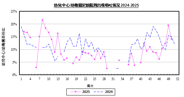 | 出現嘔吐的幼兒中心/幼稚園百分比 | 14.12 | 19.51 | 12.35 | 10.39 |