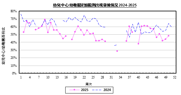 | 出現發燒的幼兒中心/幼稚園百分比 | 48.24 | 43.90 | 41.98 | 50.65 |