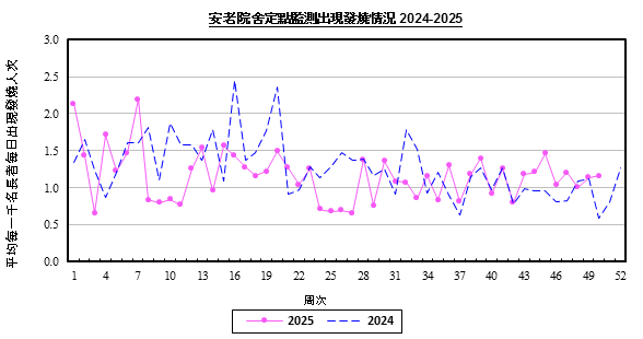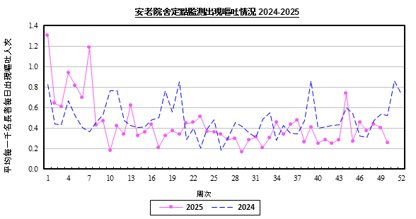 | 平均每一千名長者每日出現嘔吐人次 | 0.26 | 0.40 | 0.44 | 0.38 |