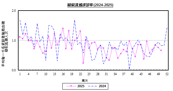 | 疑似流感 每周求診比率 (每1000個診症) |